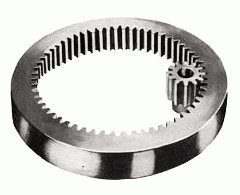 Internal Gears: Internal gears are cylinders that have their teeth on the inside of their radius. The advantage of having such a gear is the saving on space and the fact that they do not inverse the rotational direction, so they are used in applications that require those characteristics. Most typically, they are to be found in planetary gear systems. |