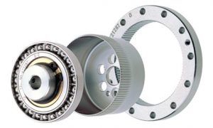Harmonic Gears: Harmonic Drive / Harmonic Gears or Strain Wave Gears are rather a rather complex types of gears, and are actually sets of planetary gears connected inside a shell and rotating co-axially. These systems are very accurate, feature a complete absence of backlash, and can achieve high gear ratios while remaining very compact. Their main application sector is differential gearing where accuracy and compactness are critical, so they are found in aerospace, robotic, and industrial motion control applications. More details on Harmonic Drive can be found here. |